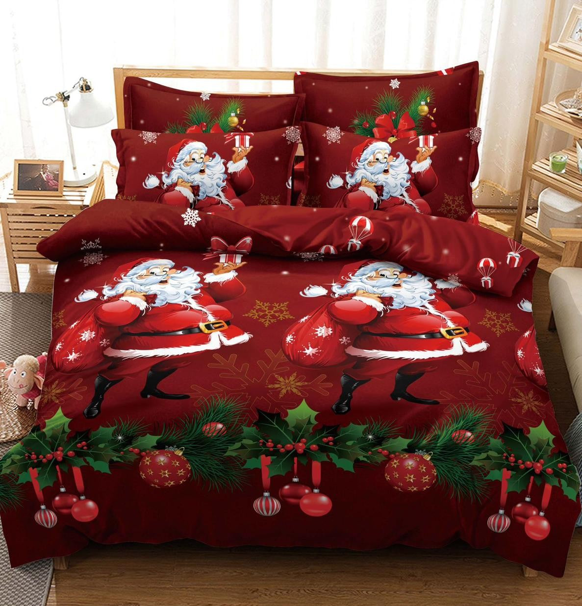 Lenjerie 1 Persoana, Bumabc Finet, 4 Piese, Mos Craciun, Rosu, J1307