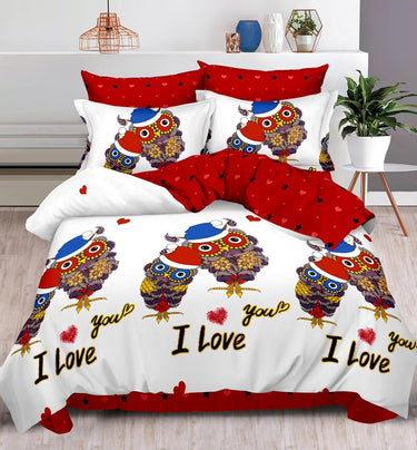 Lenjerie Bumbac Finet 6 Piese – Bufnițe Colorate & Mesaj „I Love You”, Alb/Rosu, R60-427