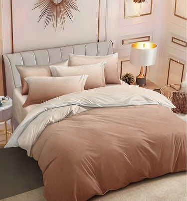 Set de lenjerie din finet gros cu efect ombre cald, în nuanțe de bej și cappuccino. Creează o atmosferă cozy, rafinată, perfectă pentru dormitoarele moderne sau clasice. Materialul este moale, plăcut pe piele și rezistent la spălări repetate.
