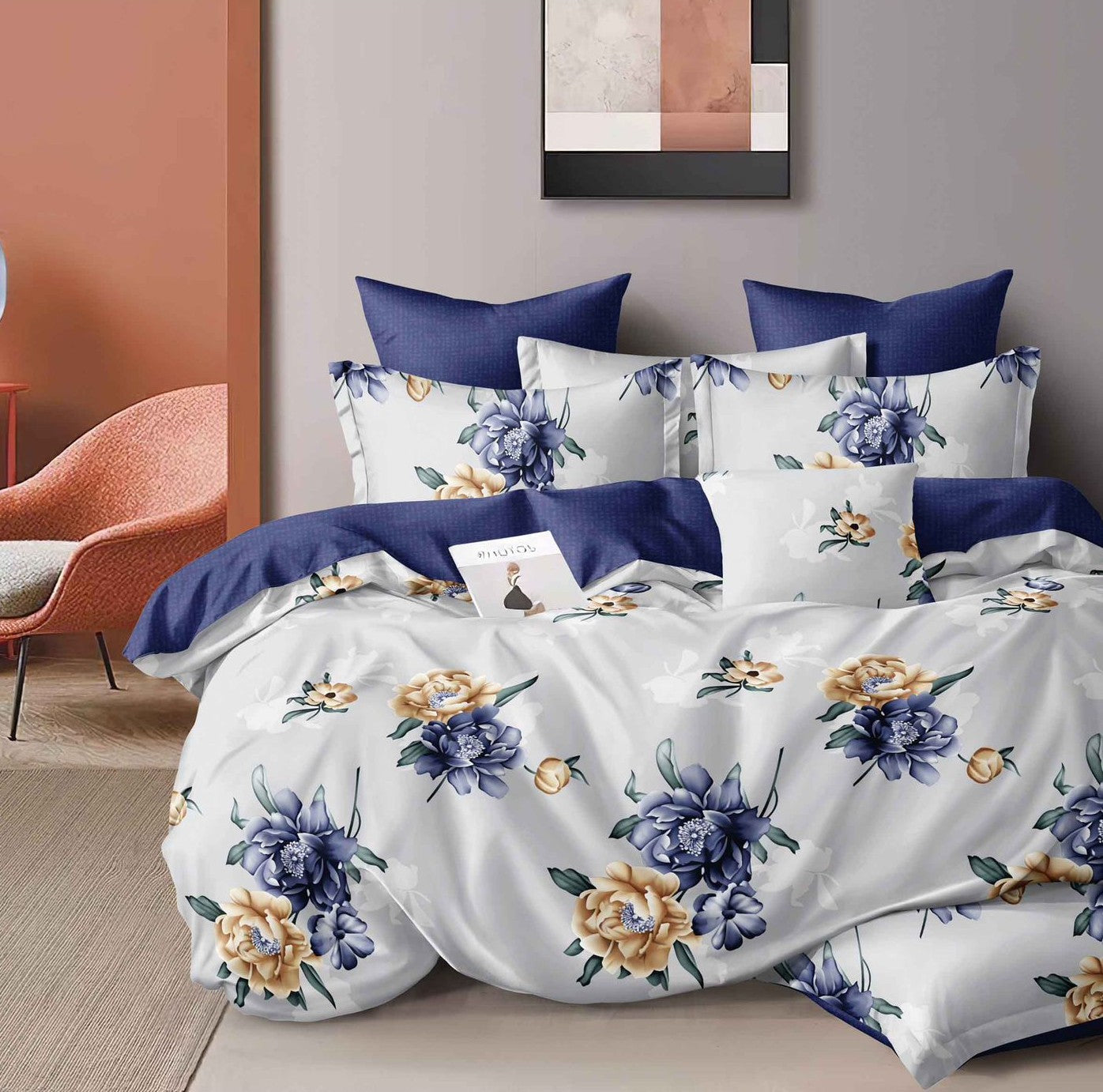 Lenjerie Bumbac Finet 6 Piese,Flori,Albastru ,W34