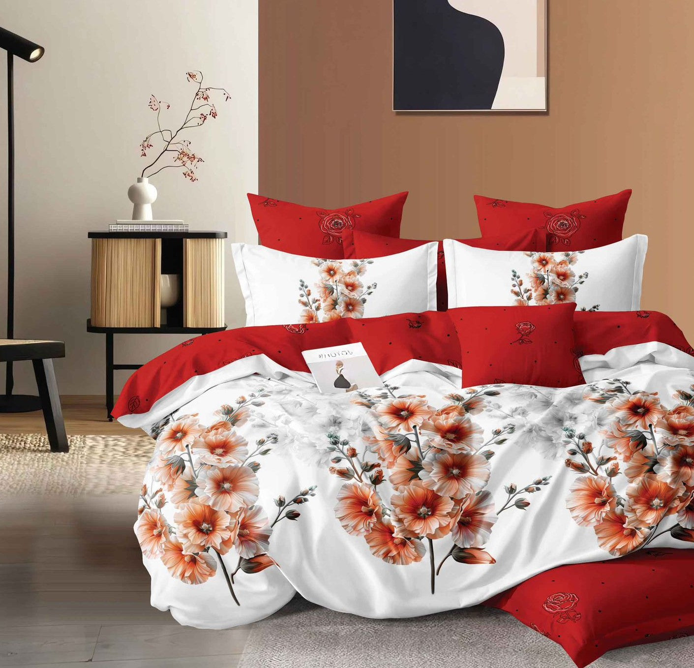 Lenjerie Bumbac Finet 6 Piese,Flori ,Rosu ,W57