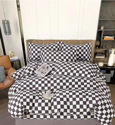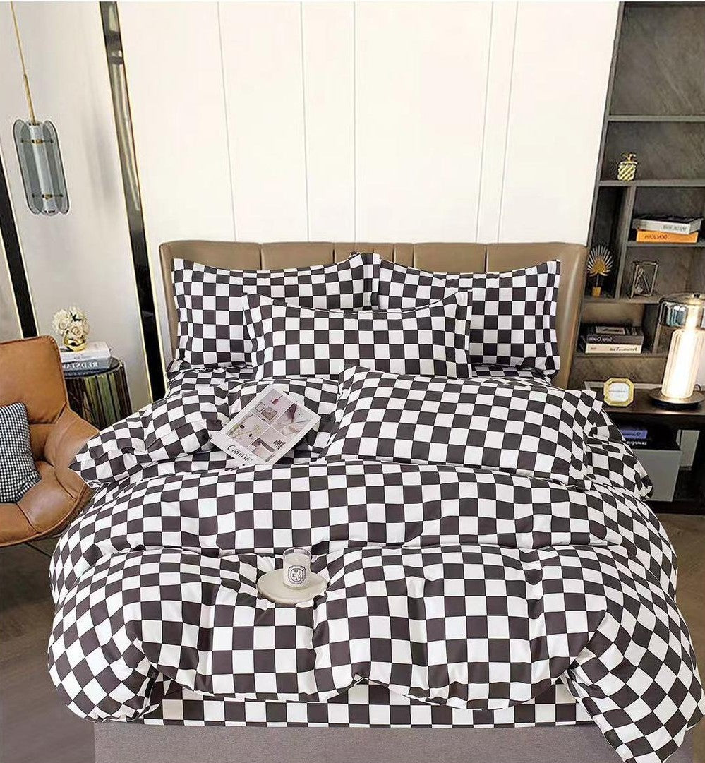 Lenjerie din finet gros, cu un model grafic de carouri alb-negru, inspirat din stilul urban modern. Atât pilota, cât și cearceaful de pat și fețele de pernă sunt acoperite cu același imprimeu tip „checkerboard”, pentru un efect vizual puternic și foarte ordonat. Setul este ideal pentru dormitoare minimaliste, industriale sau pentru cei care preferă combinațiile clasice de alb și negru.