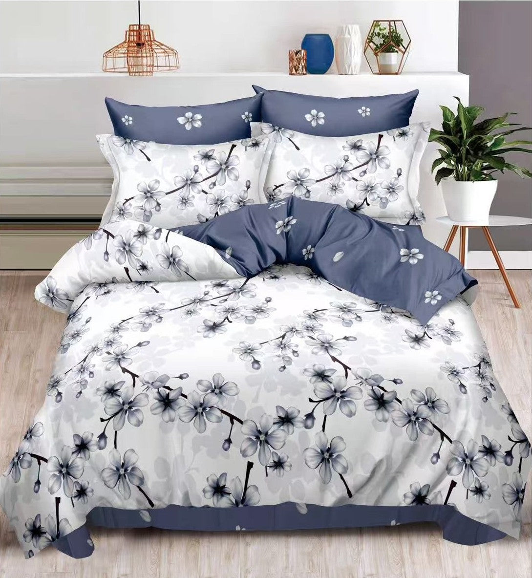 | Fețe de pernă | 70 × 70 cm ×2 + 55 × 75 cm ×2 – alb cu flori + bleu închis cu flori asortate |