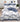 - Design alb cu flori gri pe ramuri fine, completat de bleu închis elegant.