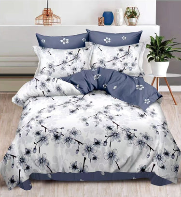 Lenjerie Bumbac Finet 6 Piese – Model Floral, Alb/Albastru, R60-457