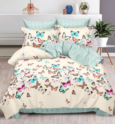 Lenjerie Bumbac Finet 6 Piese – Model Fluturi Multicolor, Bej/Verde Mneta, R60-226