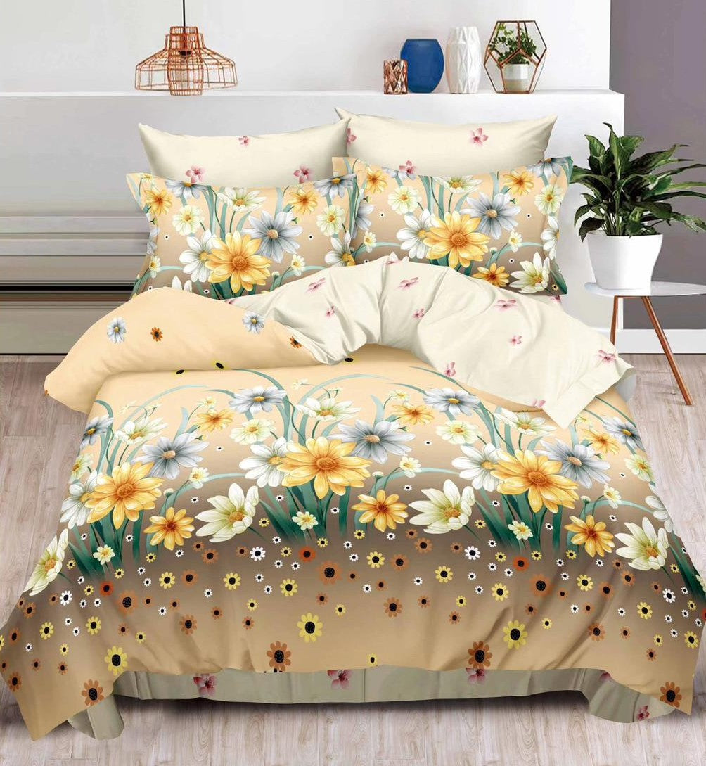 Lenjerie Finet 6 Piese – Bej cu Flori și Margarete Galbene