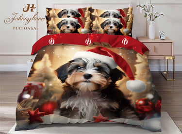 Lenjerie Bumbac Finet Craciun 6 Piese – Catelus cu Fes Rosu de Craciun, Q2-03