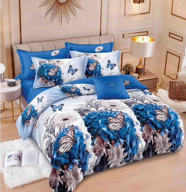 Lenjerie Bumbac Finet cu Elastic 6 Piese, Albastru,Fluturi,T300