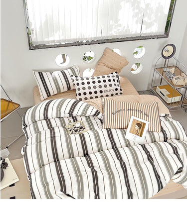 Lenjerie Bumbac Finet cu Elastic 6 Piese, Dungi,Crem,T266