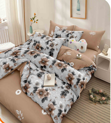 Lenjerie Bumbac Finet cu Elastic 6 Piese,Flori ,Maro ,W21