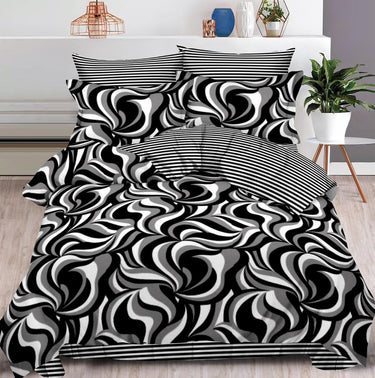 Lenjerie Bumbac Finet cu Elastic 6 Piese,Linii,Alb-Negru,T94