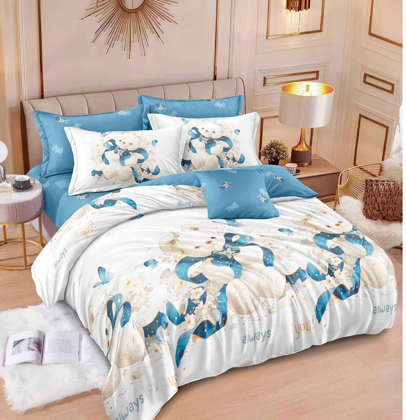 Lenjerie Bumbac Finet cu Elastic 6 Piese, Ursulet,Albastru,T297