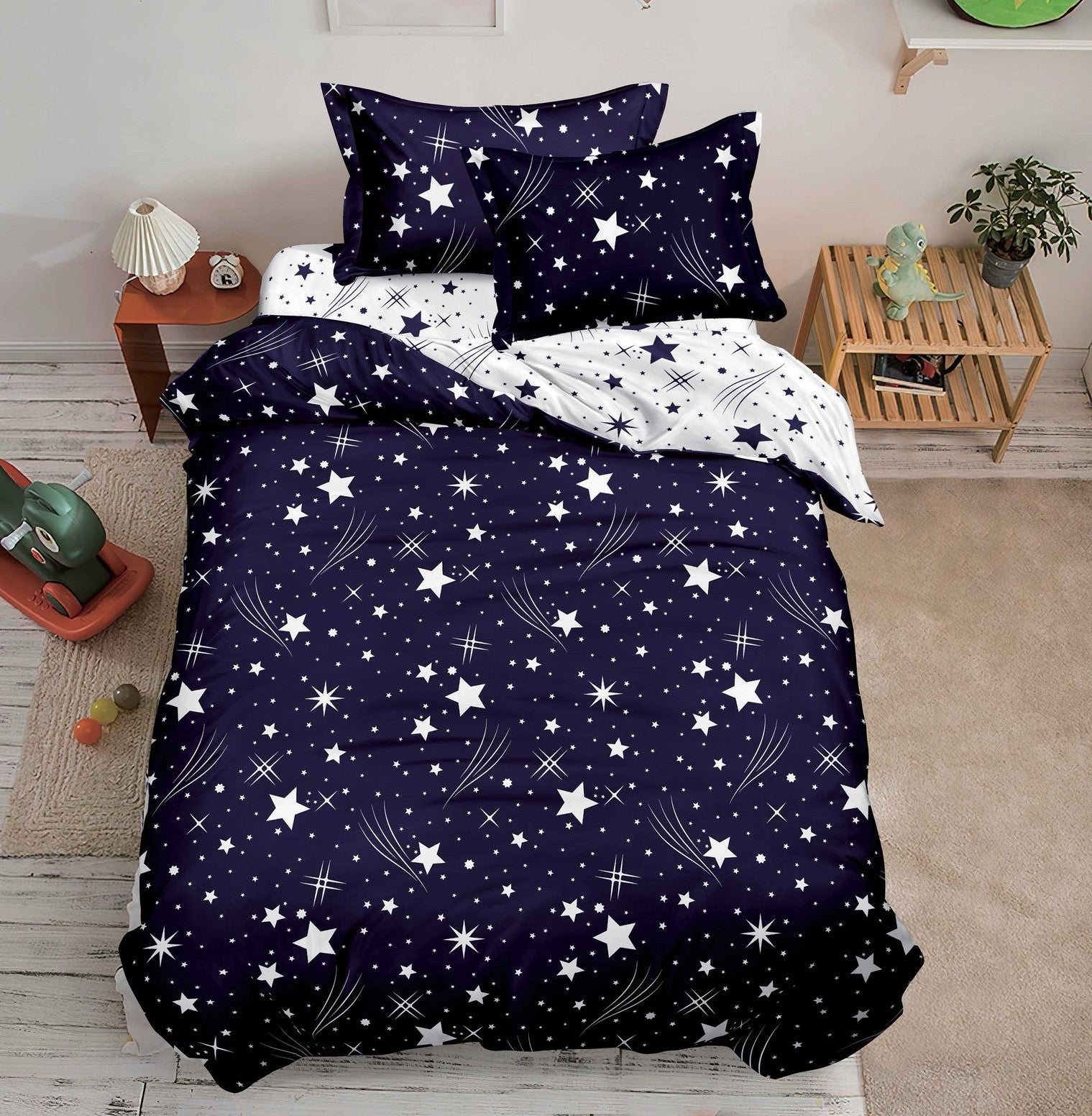 Lenjerie de pat cu elastic, UNI, Pat 1 Persoana, 4 Piese, Constelatie, Alb/Albastru T60-23