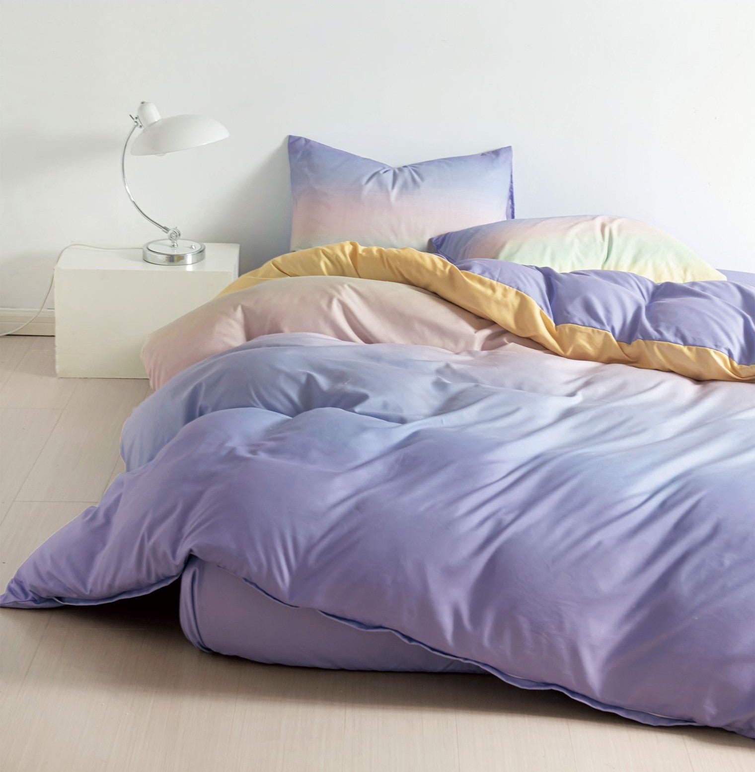 Lenjerie de pat cu elastic, UNI, Pat 1 Persoana, 4 Piese, Degrade, Multicolor, T60-123