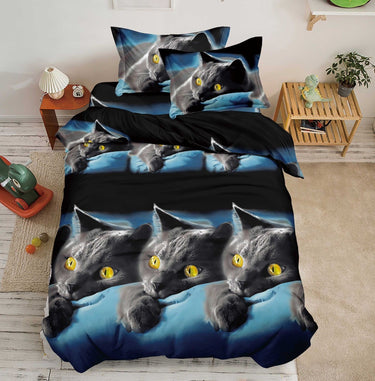 Lenjerie pat 1 Persoana, 4 PIESE, Bumbac Satinat, 3D, Model Pisici, BG-19
