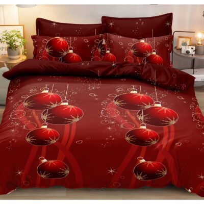 Lenjerie pat 2 persoane, 6 Piese, Bumbac Finet, Globuri, ST11093