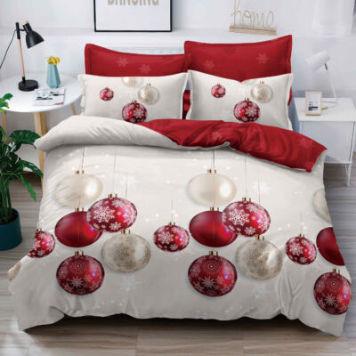 Lenjerie pat, 6 Piese, Bumbac Finet, Craciun, Globuri, ST16115