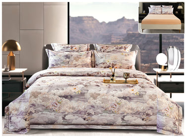 Lenjerie Pat Dublu, Bumbac Satinat Gros, 6 Piese cu Cearceaf cu Elastic – Ambalată în Cutie Cadou