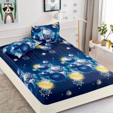 Husa Pat dublu cu elastic, Bumbac Finet, Craciun, Globuri, Bleumarin, ST10902