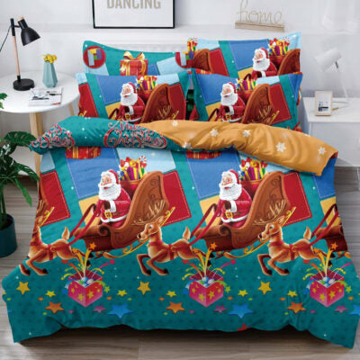 Lenjerie pat de Craciun, 6 Piese, Bumbac Finet, Mos Craciun pe sanie, ST10815