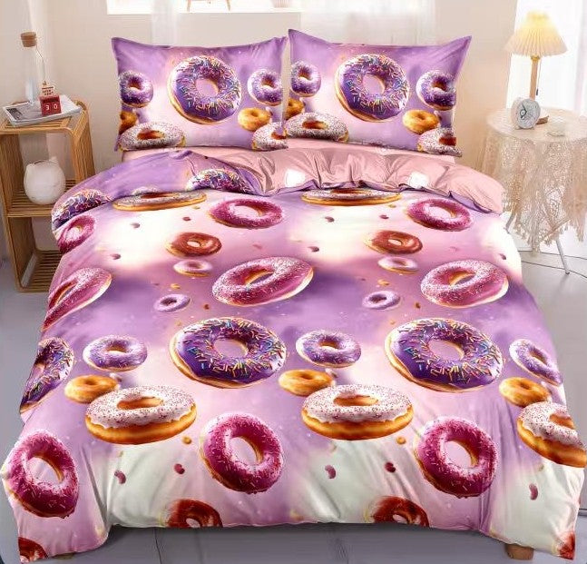 Lenjerie Pat Dublu, Bumbac Satinat 4 Piese, Gogosi, Multicolor, A50-717