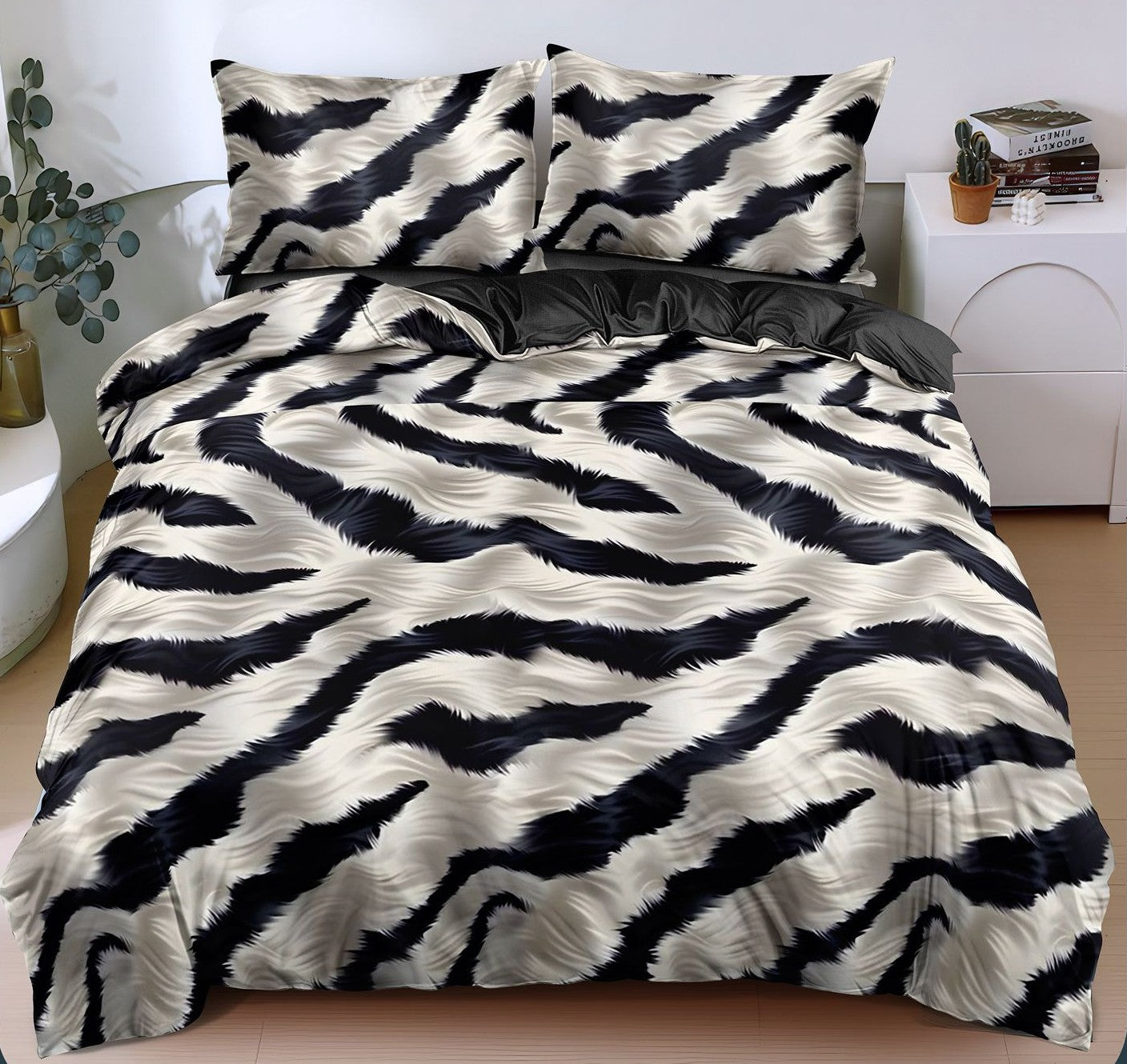 Lenjerie Pat Dublu, Bumbac Satinat 4 Piese, Zebra, Negru/Crem, A50-714
