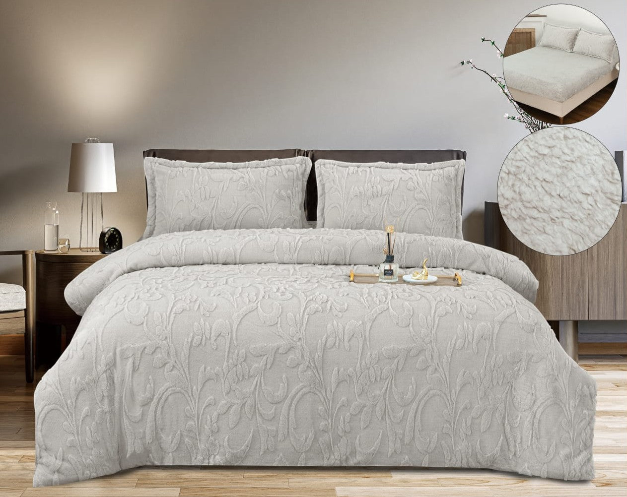 Set complet de 4 piese, conceput pentru a-ți oferi confort maxim în nopțile reci. Realizată din material pufos Cocolino, lenjeria este moale, călduroasă și plăcută la atingere, ideală pentru un somn odihnitor. Potrivită pentru paturi de 160x200 cm și 180x200 cm.