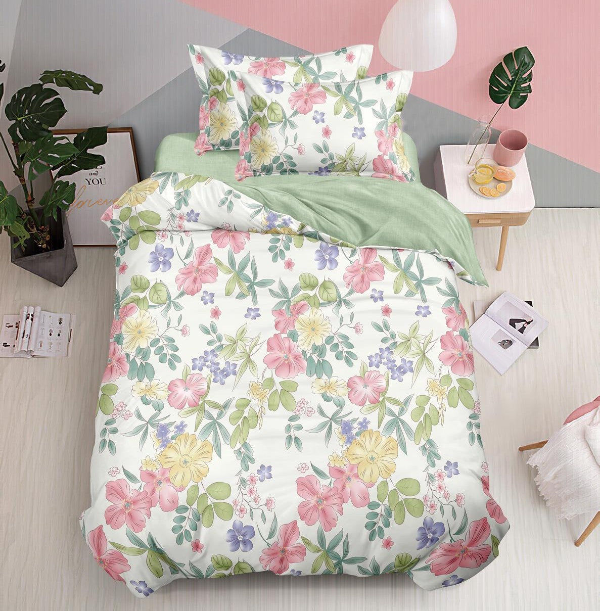 Lenjerie pat single 1 Persoana, 4 PIESE, Bumbac Finet, Floricele, Multicolor, Y60-81