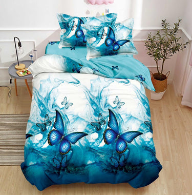 Lenjerie pat single 1 Persoana, 4 PIESE, Bumbac Finet, Fluturi, Bleu, Y60-125