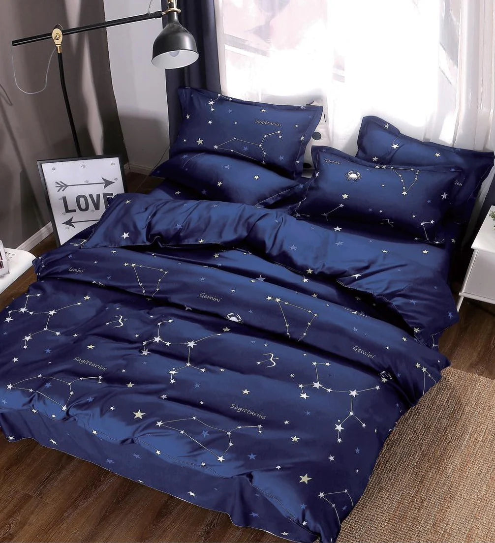 Pachet Promotional, Lenjerie Pat Dublu, 4 Piese, Bumbac Finet, Constelatie, Bleumarin, A50-220