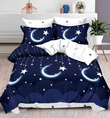 Pachet Promotional, Lenjerie Pat Dublu, 6 Piese, Bumbac Finet, Semi-Luna, Alb/Bleumarin, R60-256