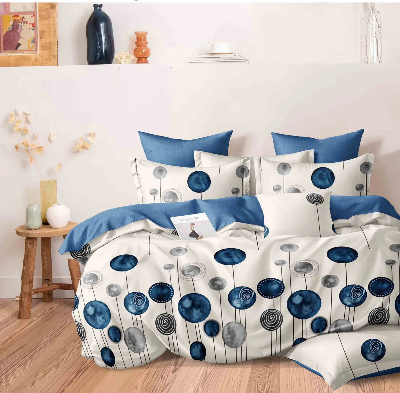Pachet Promotional, Lenjerie Pat Dublu, 6 Piese, Bumbac Finet, Cercuri, Alb/Albastru, W88-Elastic