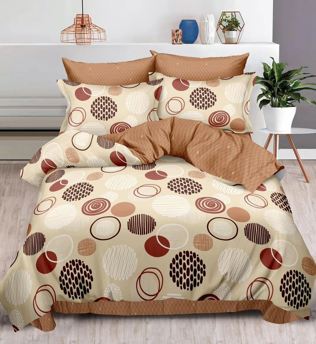 Pachet Promotional, Lenjerie Pat Dublu, 6 Piese, Bumbac Finet, Cercuri, Maro/Bej, R60-480