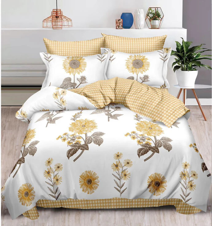 Pachet Promotional, Lenjerie Pat Dublu, 6 Piese, Bumbac Finet, Floarea Soarelui, Galben/Alb, T215-Elastic