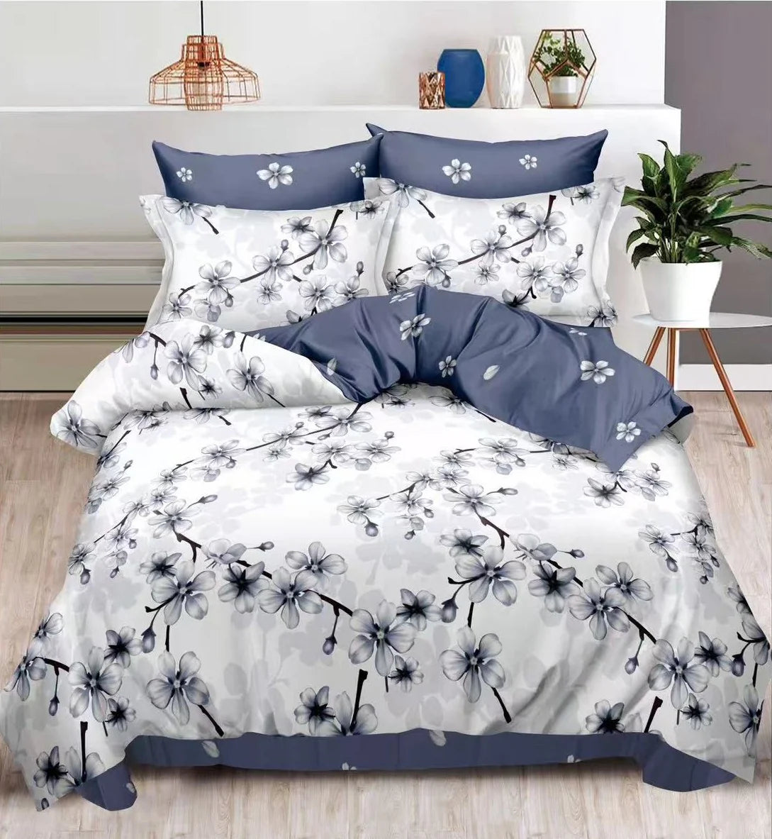 Pachet Promotional, Lenjerie Pat Dublu, 6 Piese, Bumbac Finet, Floricele, Alb/Albastru, R60-457