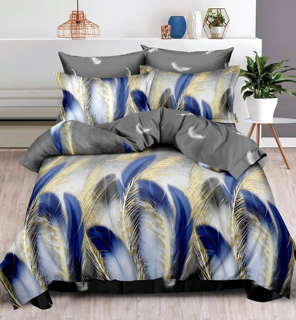 Pachet Promotional, Lenjerie Pat Dublu, 6 Piese, Bumbac Finet, Pene, Bleumarin/Gri, R60-463