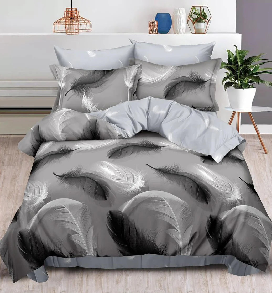Pachet Promotional, Lenjerie Pat Dublu, 6 Piese, Bumbac Finet, Pene, Gri, R60-458