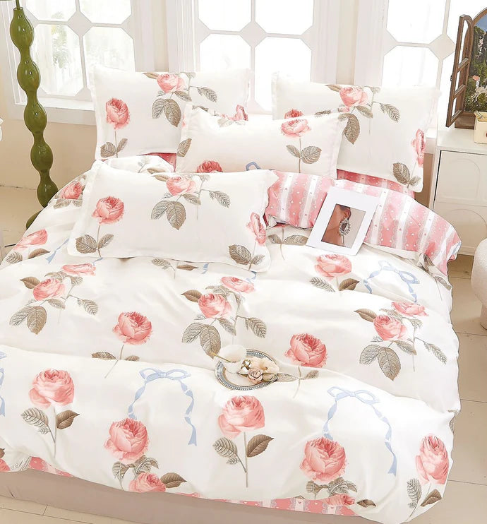 Pachet Promotional, Lenjerie Pat Dublu, 6 Piese, Bumbac Finet, Trandafiri, Roz/Alb, R60-566