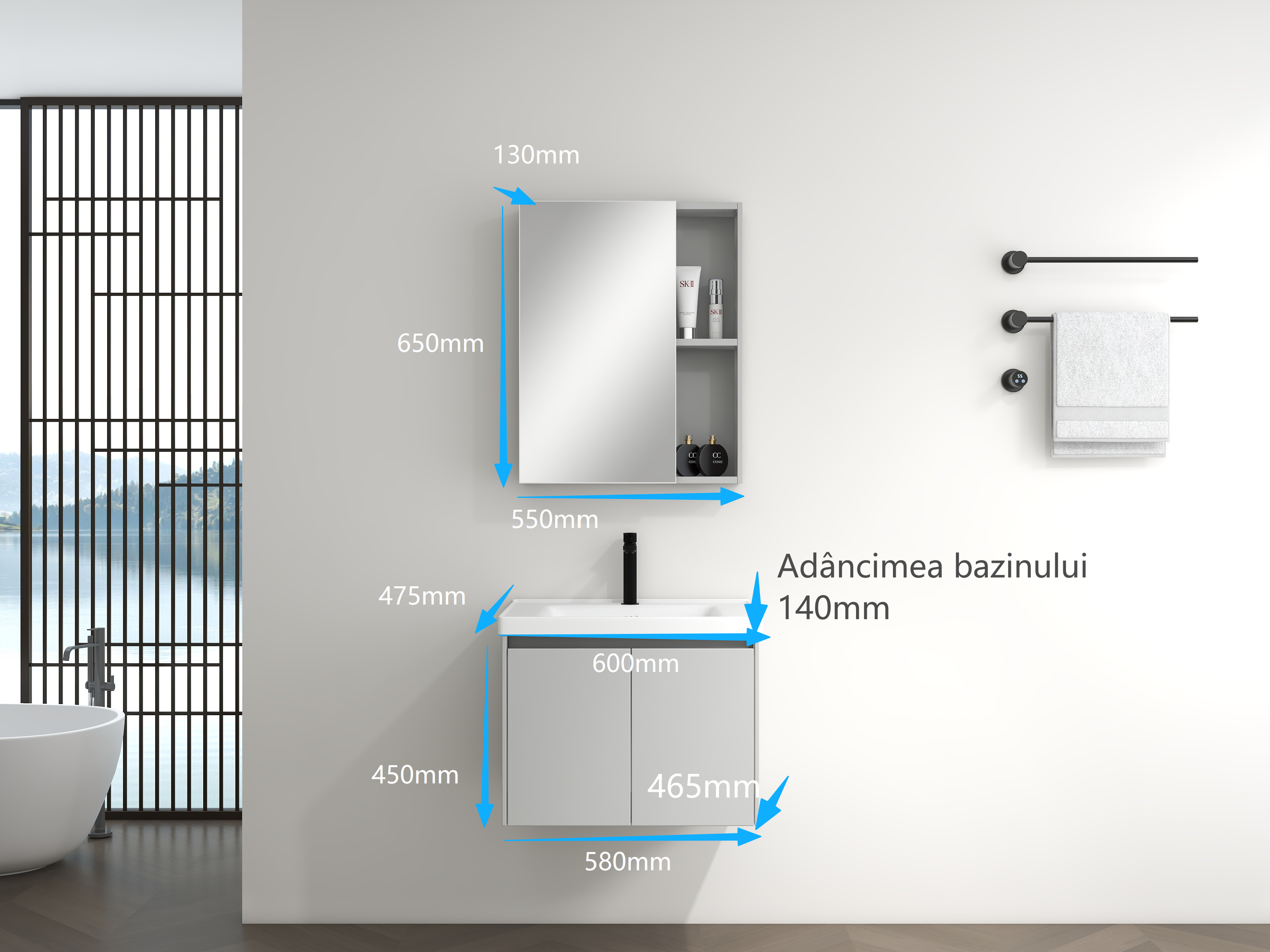| Dulap oglindă | 550 × 130 × 650 mm |